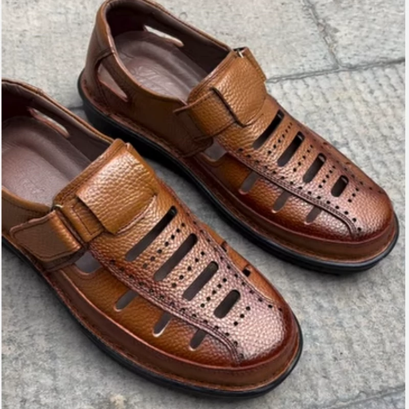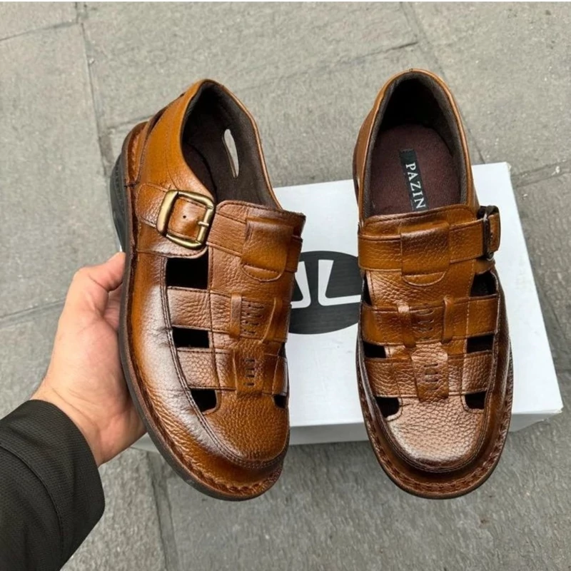 تابستانی مردانه تمام چرم سوراخ دار بند دار