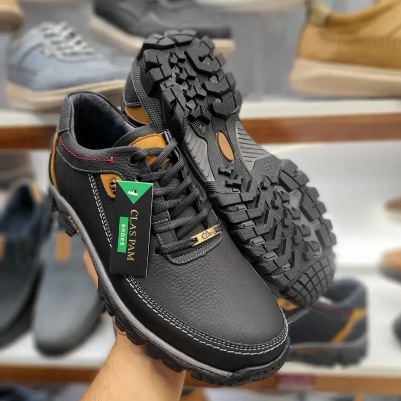 کفش مردانه تمام چرم اسپورتی مدل جدید بازیره لاستیکی خاص و رنگ خاص