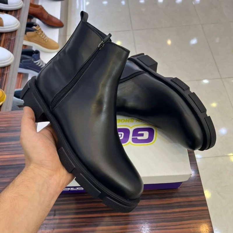 نیم بوت تمام چرم مدل برت گاوی زیره لاستیک با کیفیت پوتین دو زیپ