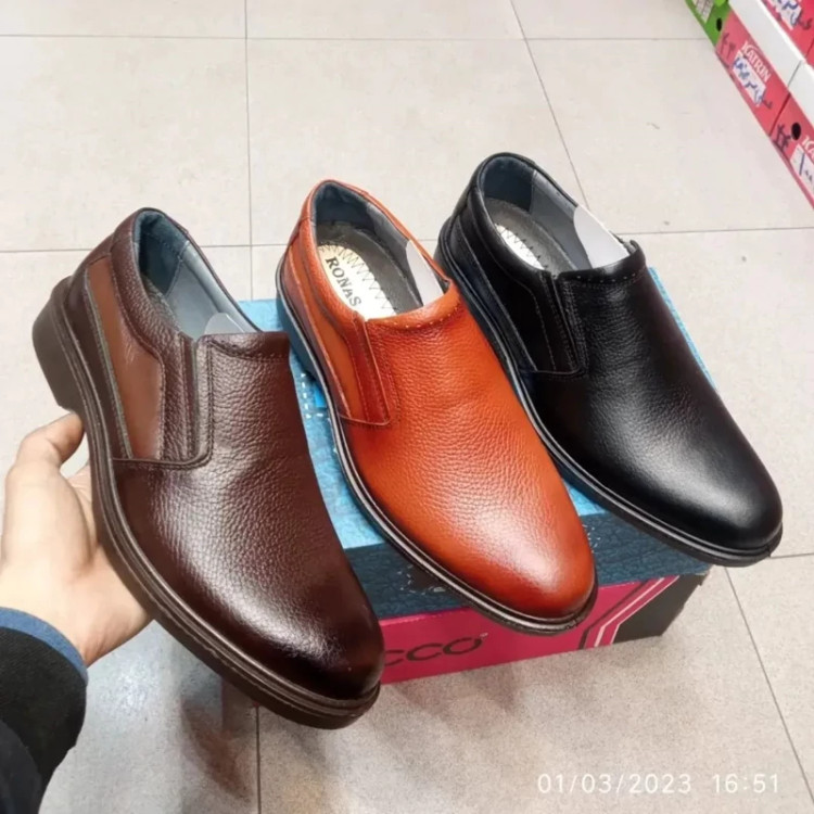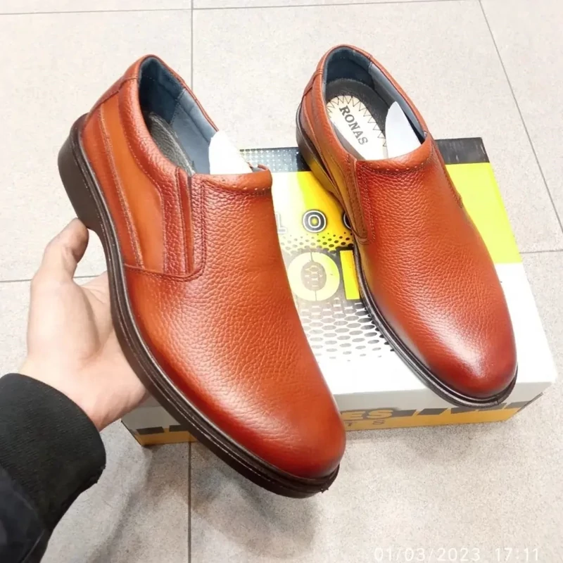 کفش مردانه تمام چرم راحتی ساده با چاپ فلوتر روناس کد 2722