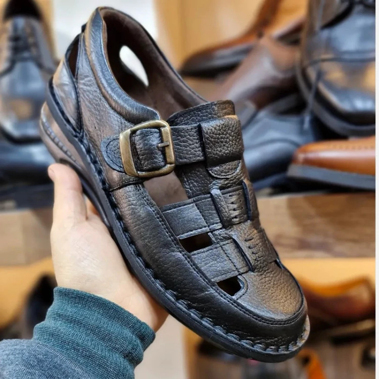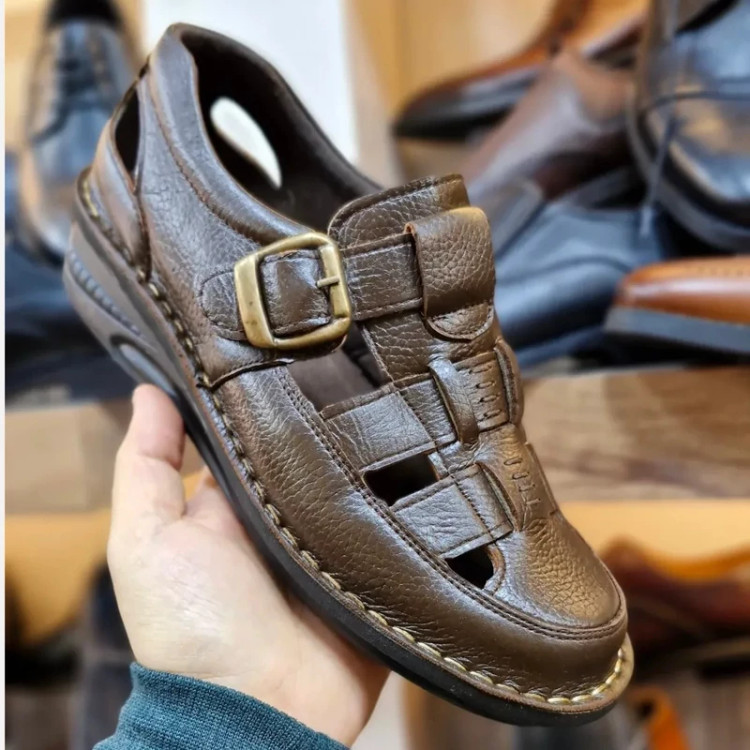 کفش تابستانی مردانه چرم تبریز مدل جلو بسته