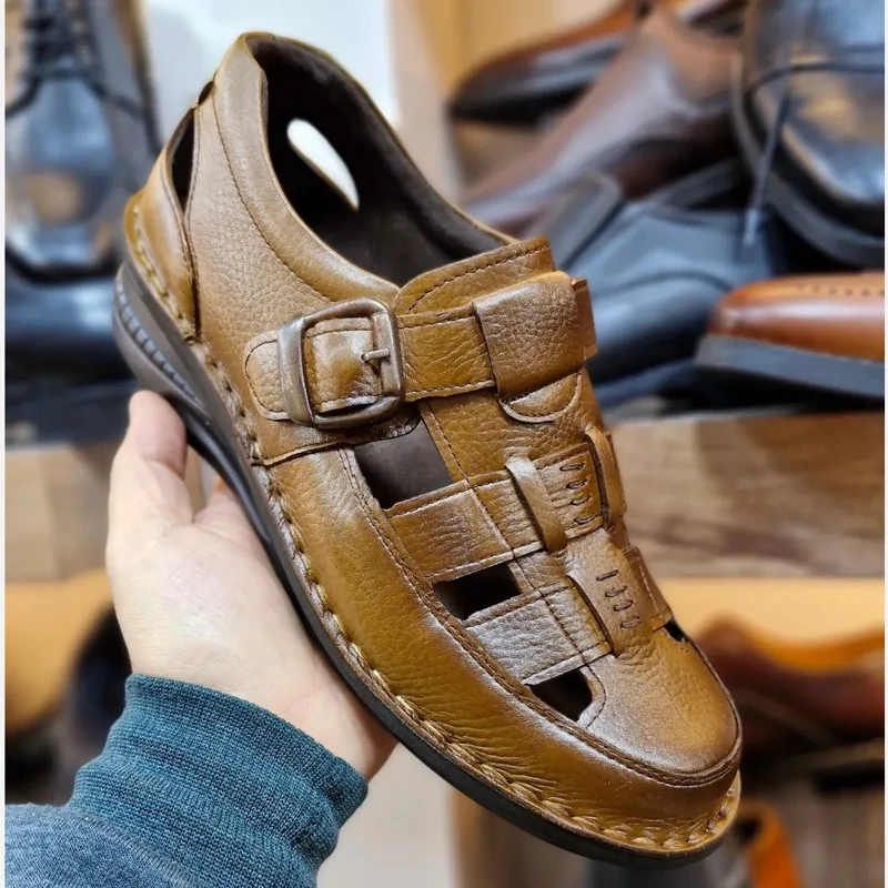 کفش تابستانی مردانه چرم تبریز مدل جلو بسته