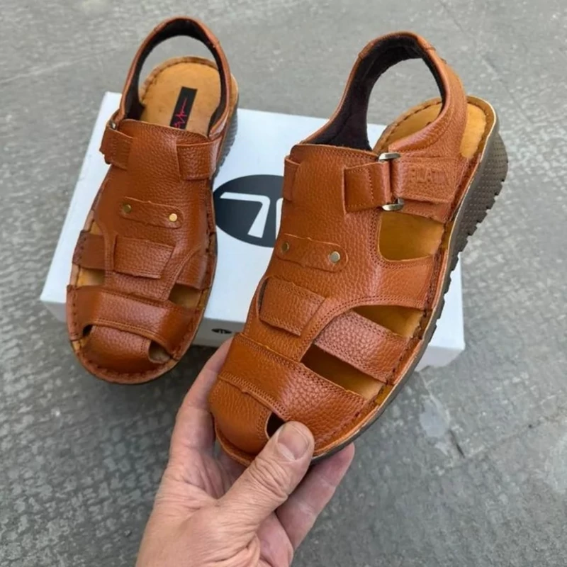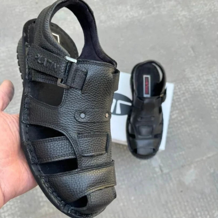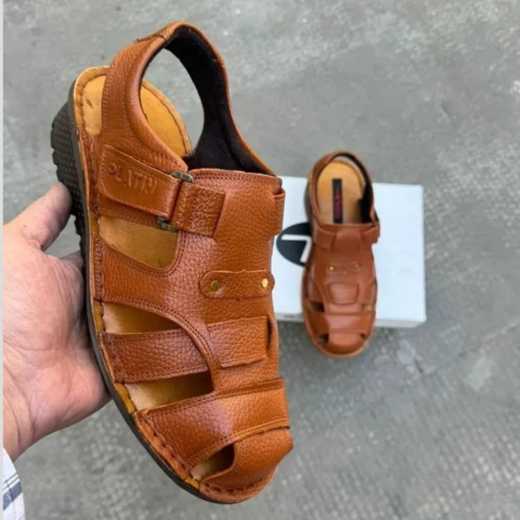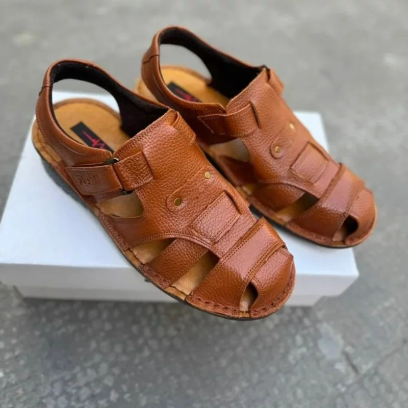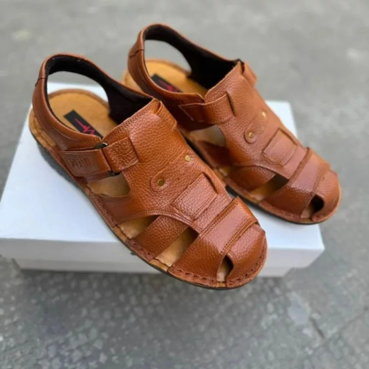 صندل تمام چرم مردانه دست دوز جلو بسته تبریز