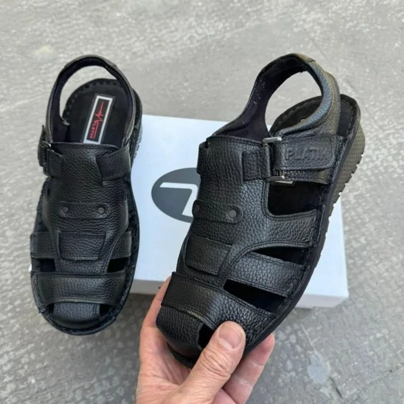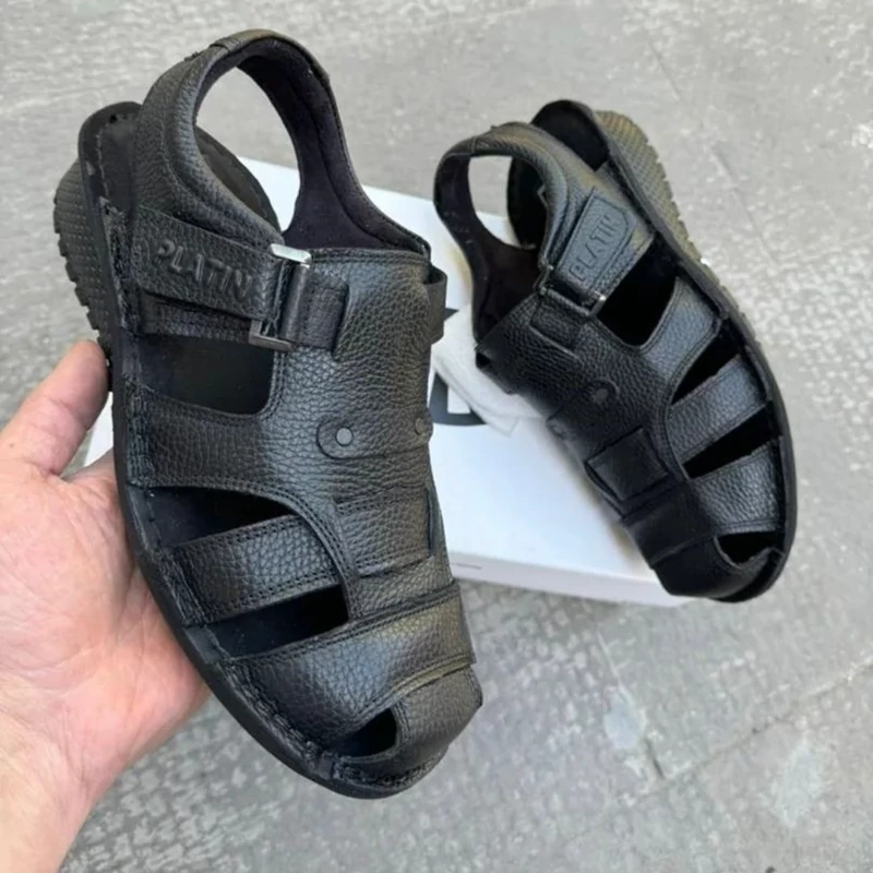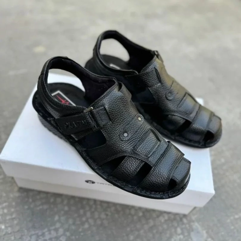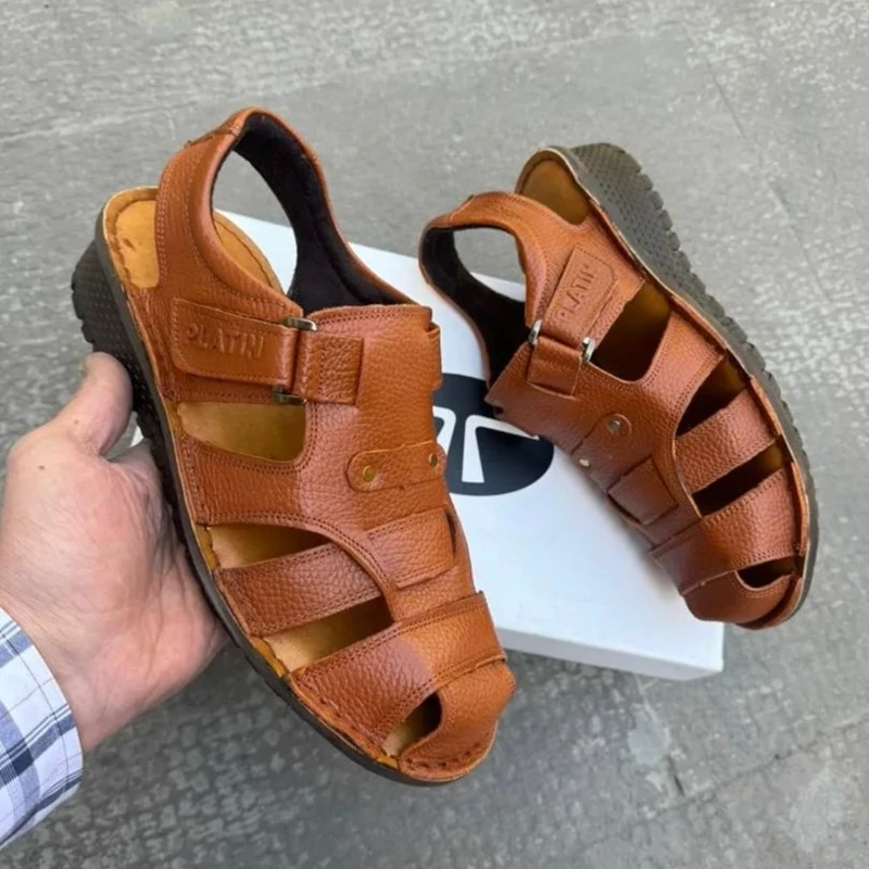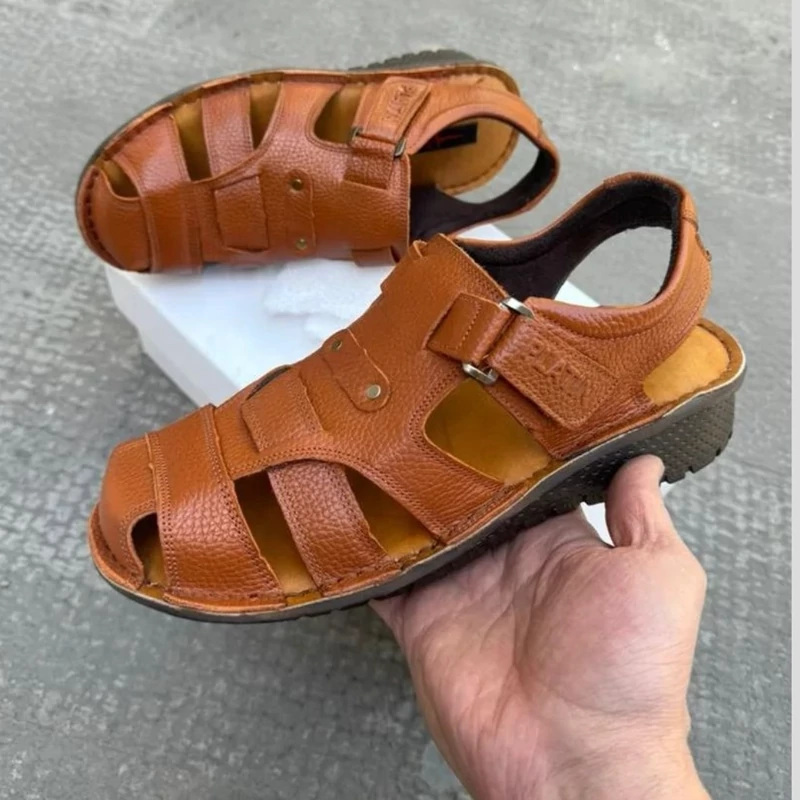 صندل تمام چرم مردانه دست دوز جلو بسته تبریز