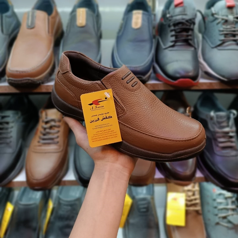 کفش فرزین یکی از بهترین برند بین کفشهای چرم طبی می باشد و میتواند راحتی را به شما هدیه دهد 🔴رویه کفش از چرم مرغوب درجه 1 گاوی 🔴آستری داخل کفش از چرم مرغوب بزی وکتان 100درصد پنبه 🔴کف داخل کفش متشکل از چرم مرغوب بزی درجه 1 با طراحی وساخت کاملاً طبی 🔴طراحی وساخت اندازه ماهیچه ها طبق استاندارد های بین المللی وبه صورت100% طبی