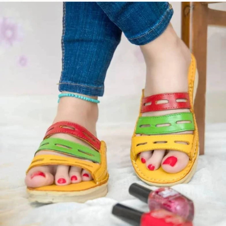 دمپایی زنانه تمام چرم مدل جدید با طح های مختلف
