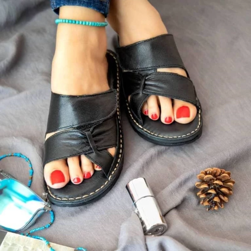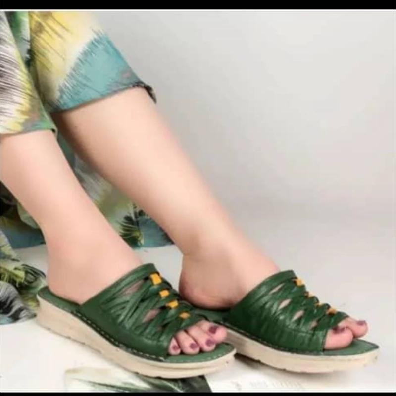 دمپایی زنانه تمام چرم مدل جدید با طح های مختلف