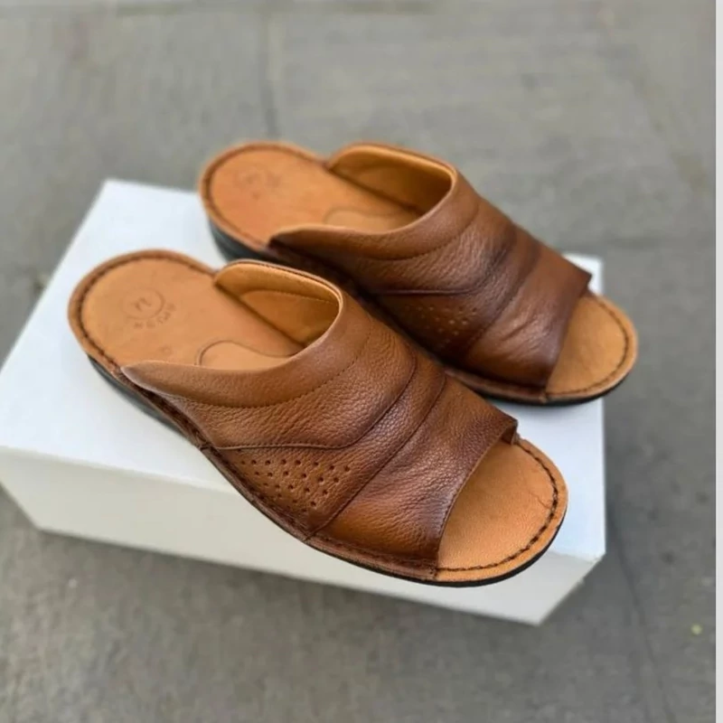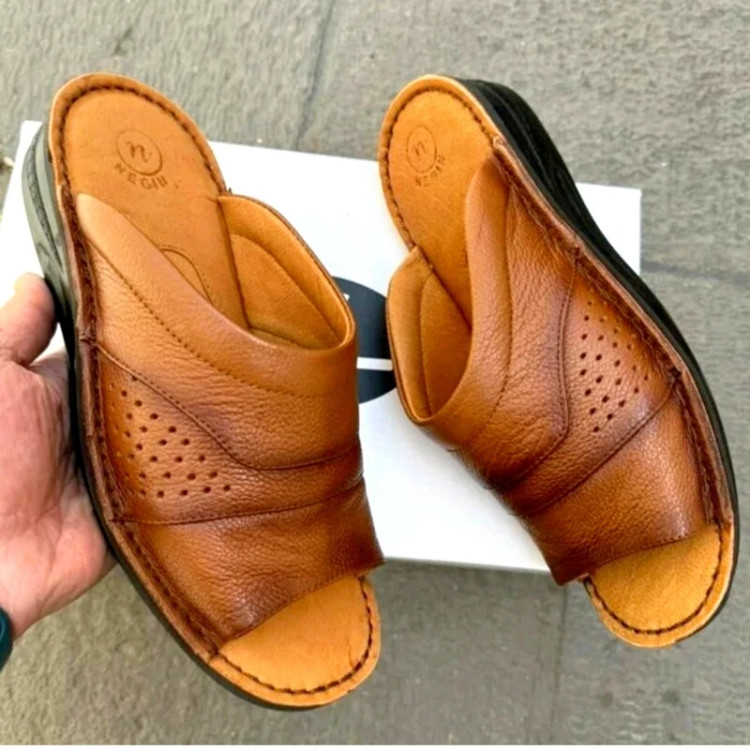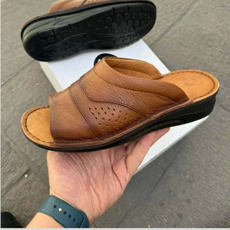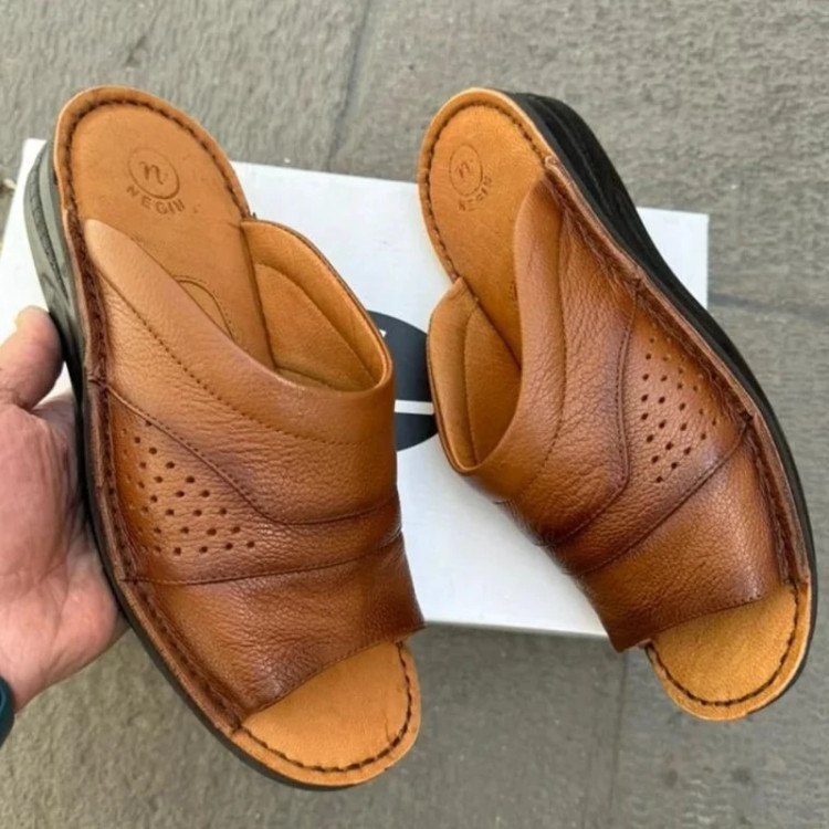 صندل دمپایی مردانه تمام چرم طبی مدل نگین تبریز