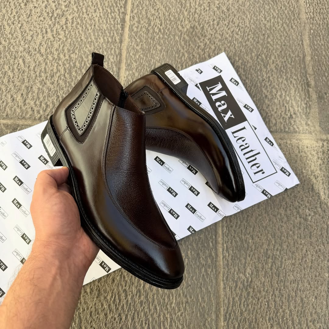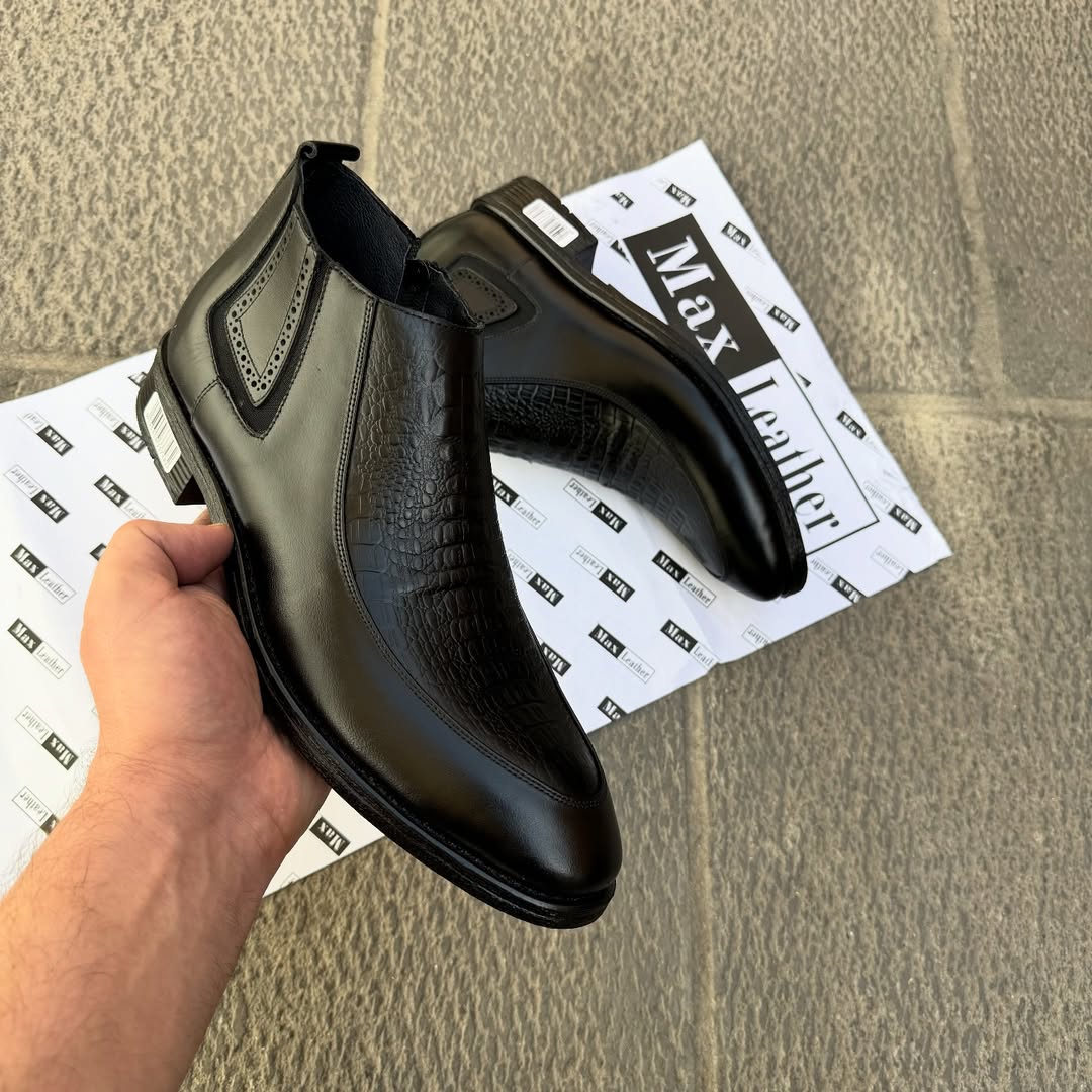 نیم بوت مردانه تمام چرم سنگی برند بکسلی