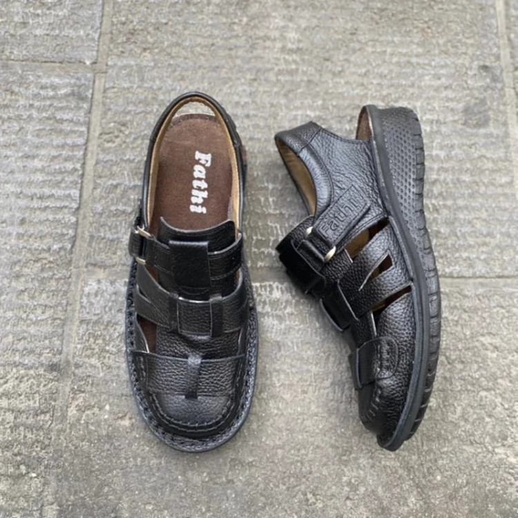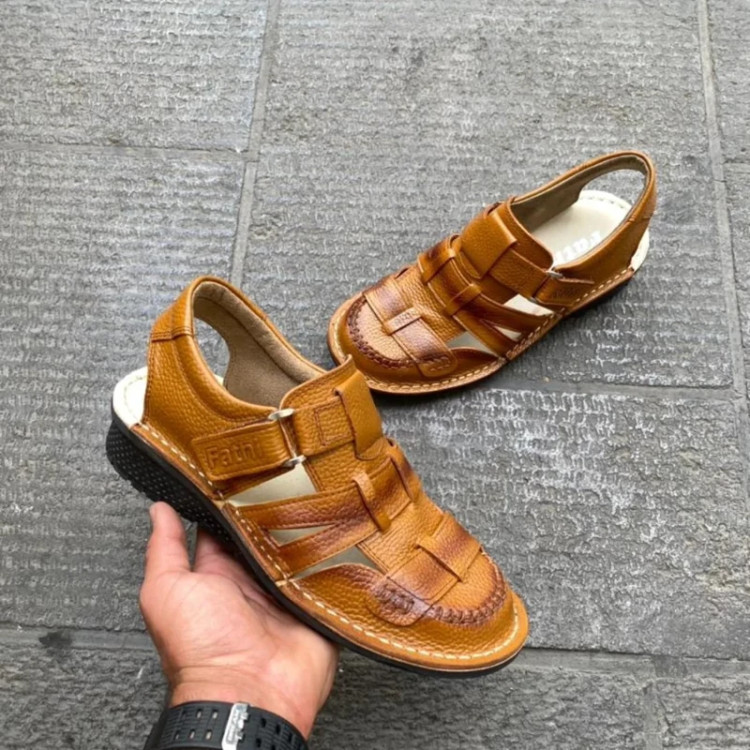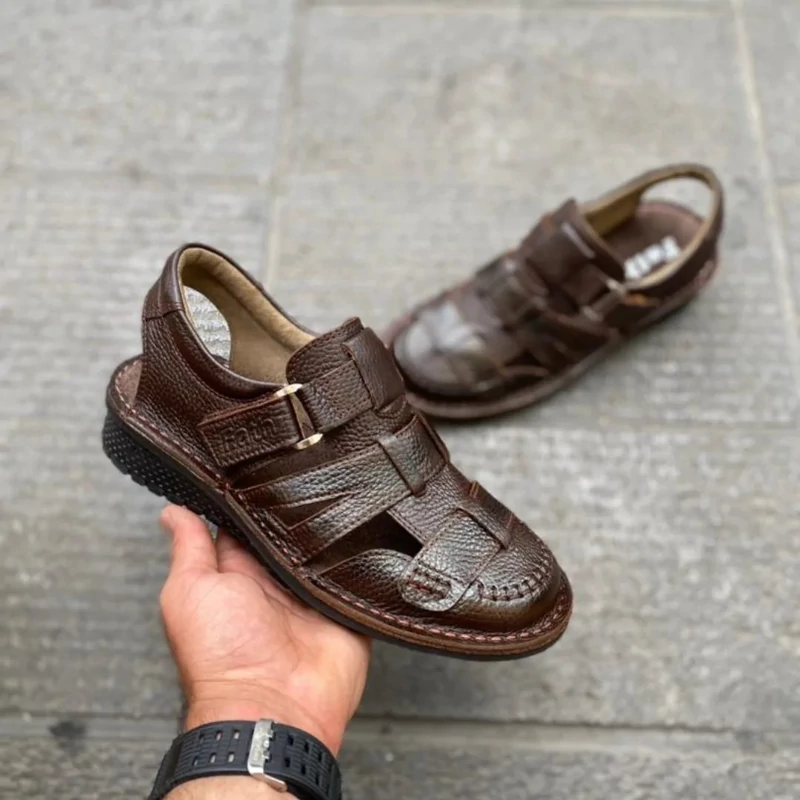 صندل تابستانی مردانه تمام چرم دور دوز تبریز مدل جلو بسته