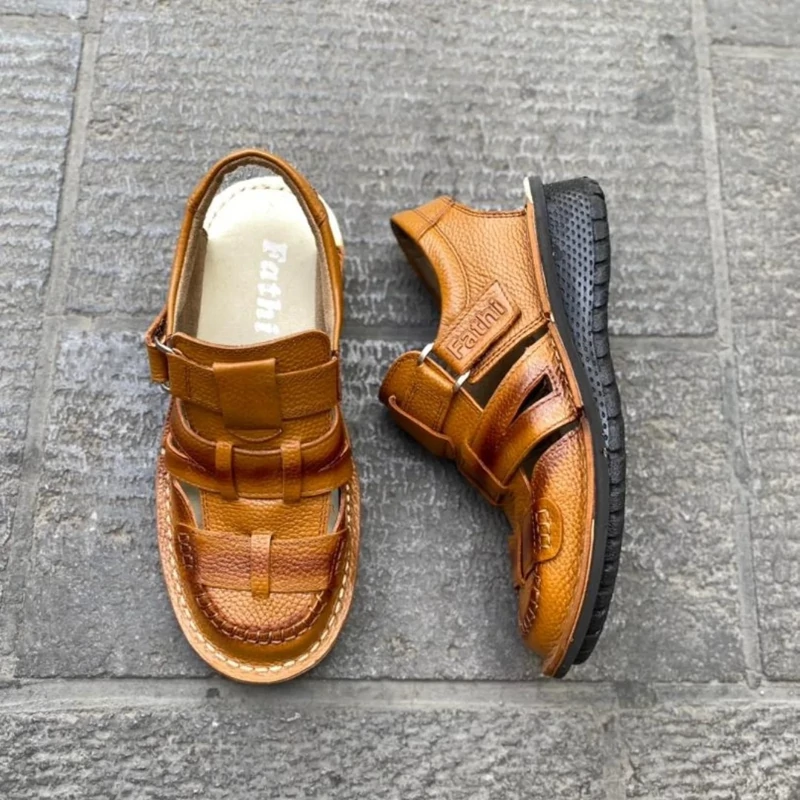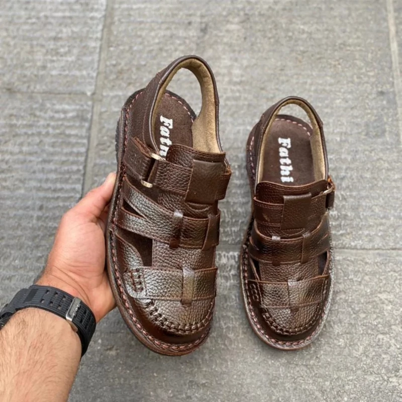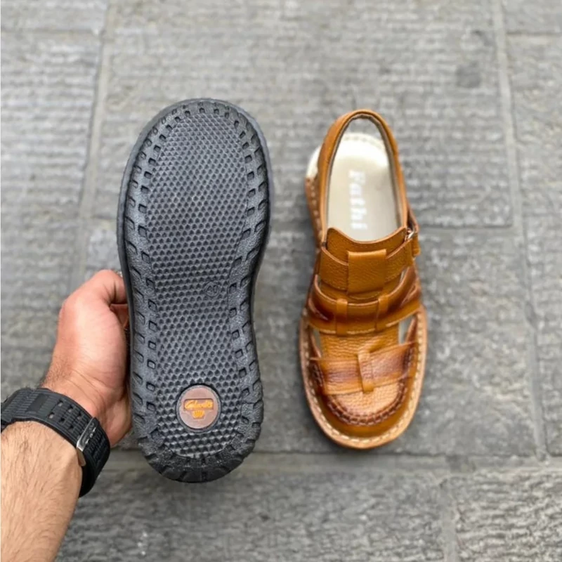 صندل تابستانی مردانه تمام چرم دور دوز تبریز مدل جلو بسته