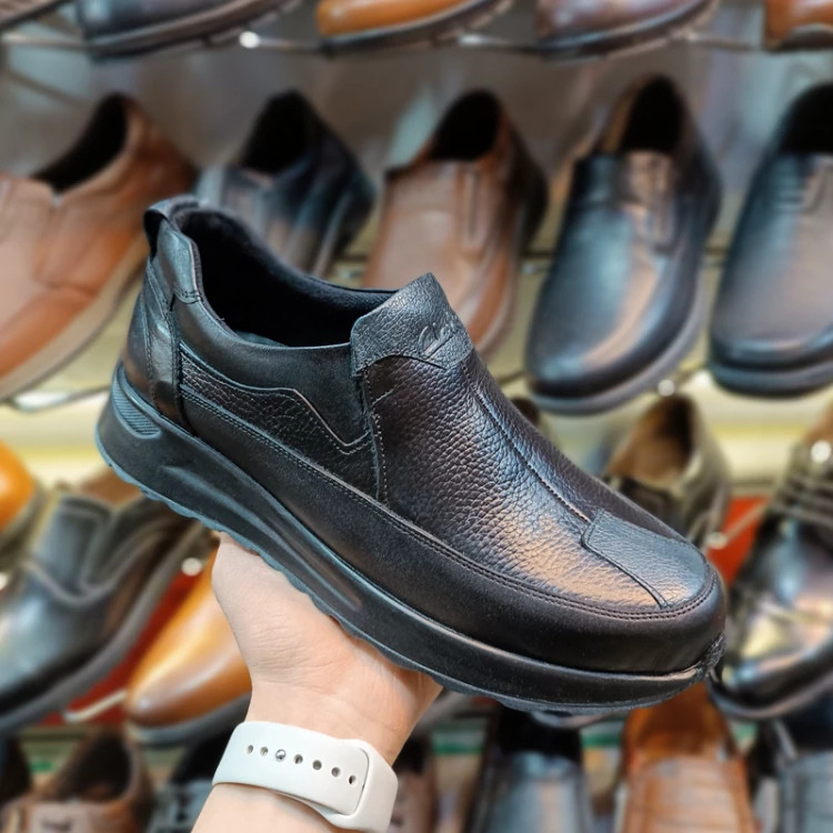 کفش اسپورت مردانه تمام چرم زیره پیو کف طبی بی بند و بندی